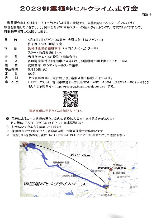 御霊櫃峠ヒルクライム走行会を、今年も開催します!
