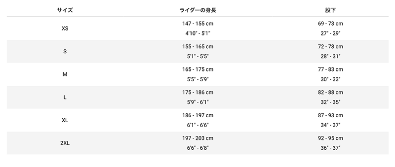 ほとんどのメーカーや車種には、身長や足の長さ(股下)を目安にした適合サイズ表が用意されています。